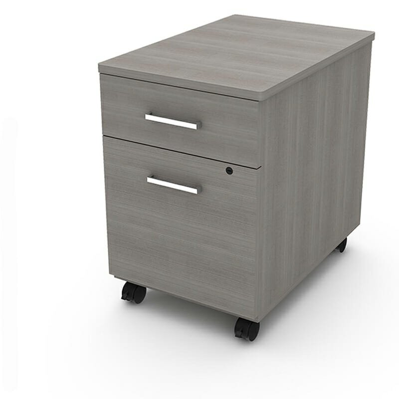 Compact mobile cabinet with secure locking and metal drawer system.