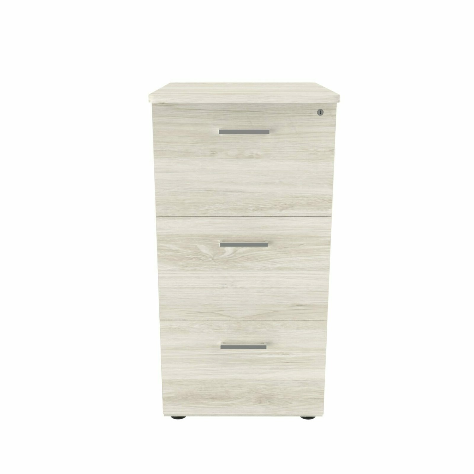 A tall filing cabinet with three uniform drawers, ideal for organized document storage. Built from 19 mm melamine-coated board, includes textured finish, structural metal drawers, and dual-slide rail system. Designed with leveling feet and secure lock system. Ready-to-use upon delivery and available in multiple colors.