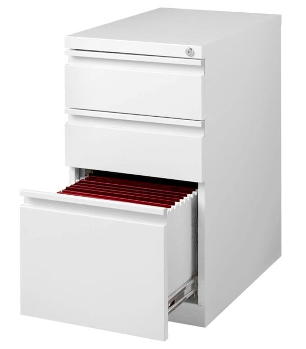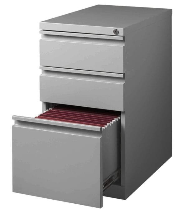 Archivero Movil metálico con 2 cajones y 1 gaveta, certificado y práctico para oficinas que requieren movilidad y almacenamiento seguro.