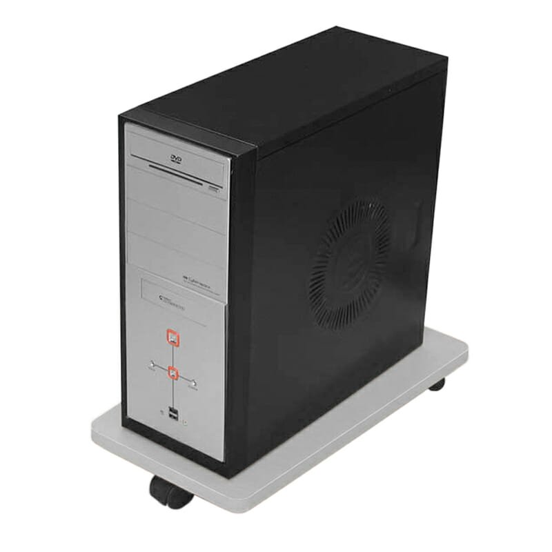 Base móvil para CPU, facilita la movilidad y protege el equipo en oficinas dinámicas.