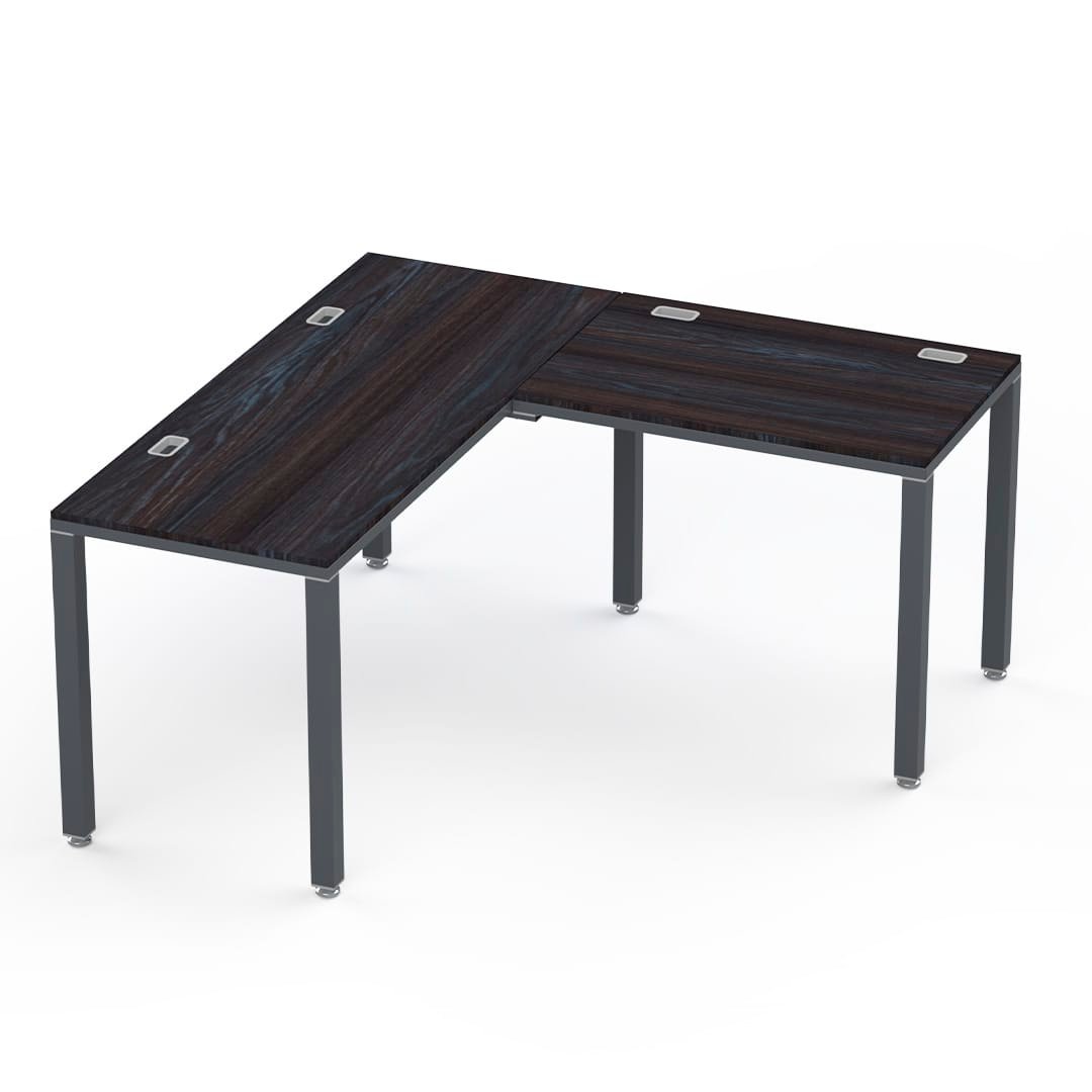 Escritorio en L ideal para espacios de trabajo individuales que requieren amplitud y funcionalidad. Su diseño moderno y estructura metálica ofrecen una solución práctica y resistente para el día a día.