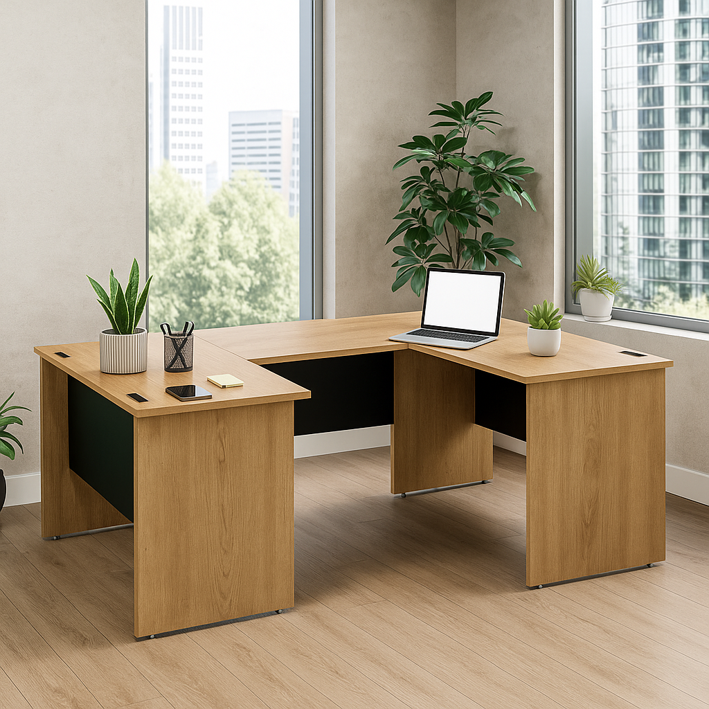 Diseñado para oficinas ejecutivas que buscan combinar elegancia y funcionalidad en un solo mueble. Su estructura robusta permite una capacidad de carga de hasta 80 kg, ideal como punto focal del espacio de trabajo.