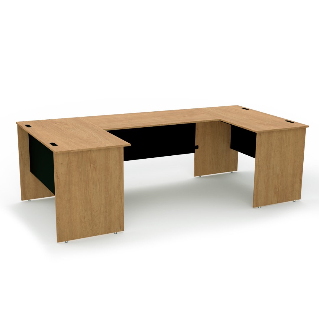 Diseñado para oficinas de alto nivel y para quienes buscan un ambiente de trabajo elegante y funcional. Este tipo de escritorio se convierte en un elemento central en espacios ejecutivos, gracias a su tamaño amplio y su diseño pensado para maximizar la eficiencia y la estética en entornos profesionales.