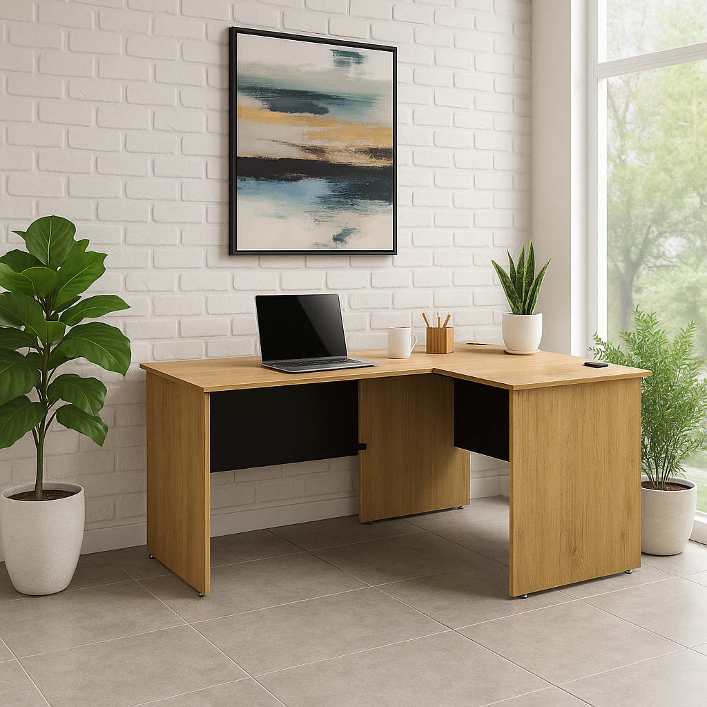 La opción perfecta para aprovechar al máximo el espacio gracias a su diseño en L. Ideal para esquinas y zonas reducidas, este escritorio permite crear estaciones de trabajo amplias, organizadas y funcionales.