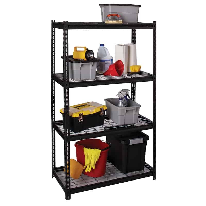 Anaquel metálico de 4 repisas fabricado en lámina galvanizada, diseñado para resistir cargas pesadas de hasta 1500 kg distribuidos. Su sistema de armado sin tornillos y sus entrepaños de rejilla metálica permiten un montaje rápido y ventilación óptima del contenido almacenado.