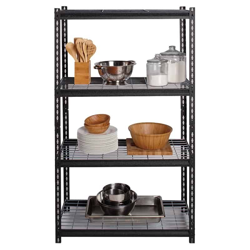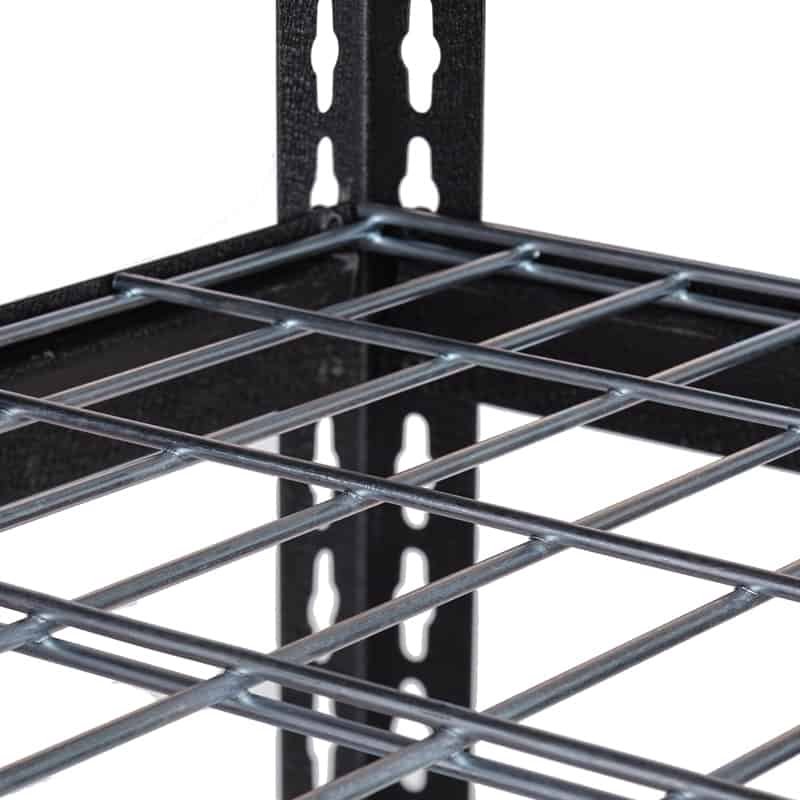 Anaquel metálico con repisas de rejilla, ideal para almacenamiento pesado en industria, comercio u hogar. Soporta hasta 1500 kg y se arma fácilmente sin herramientas.