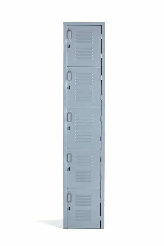Locker metálico de 5 puertas tipo rejilla, amplio y funcional, perfecto para espacios compartidos que requieren organización y ventilación.
