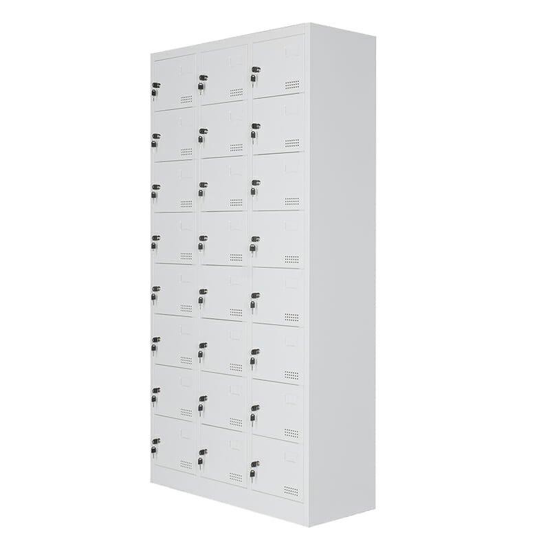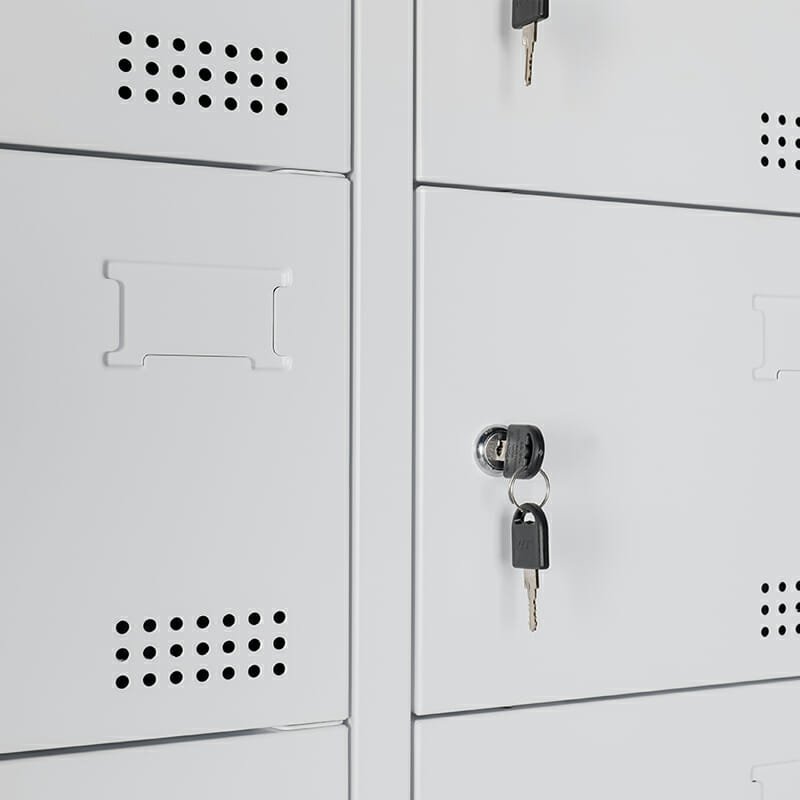 El modelo 1108 ofrece un almacenamiento seguro y eficiente con 24 puertas individuales, cada una equipada con ventilación, llave y portaetiquetas. Fabricado con acero rolado en frío calibre 22 y recubierto en pintura blanca en polvo. Su formato compacto y su estructura resistente lo convierten en una excelente opción para oficinas, vestidores o gimnasios.