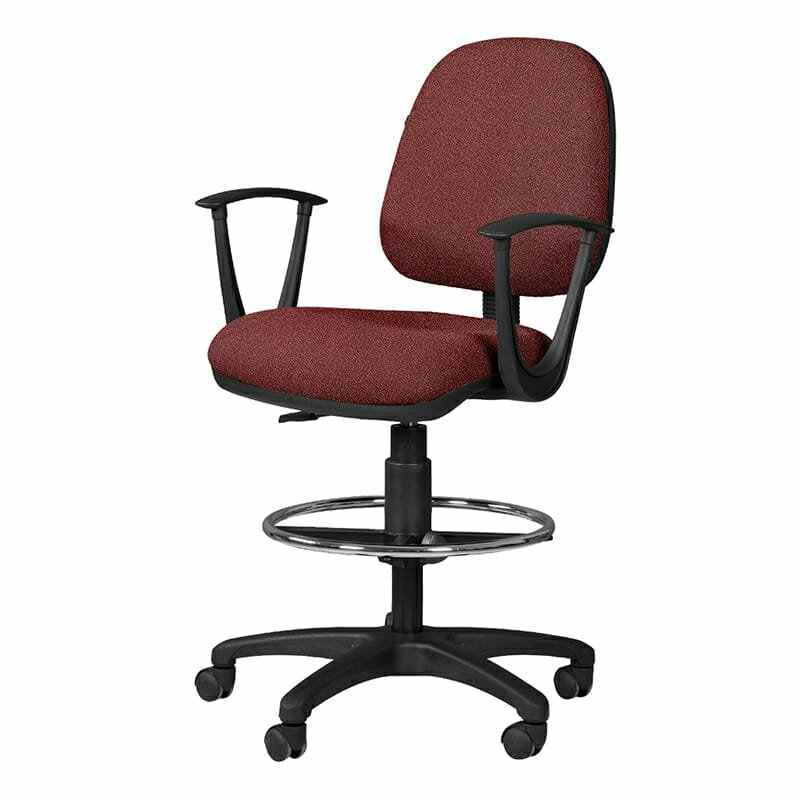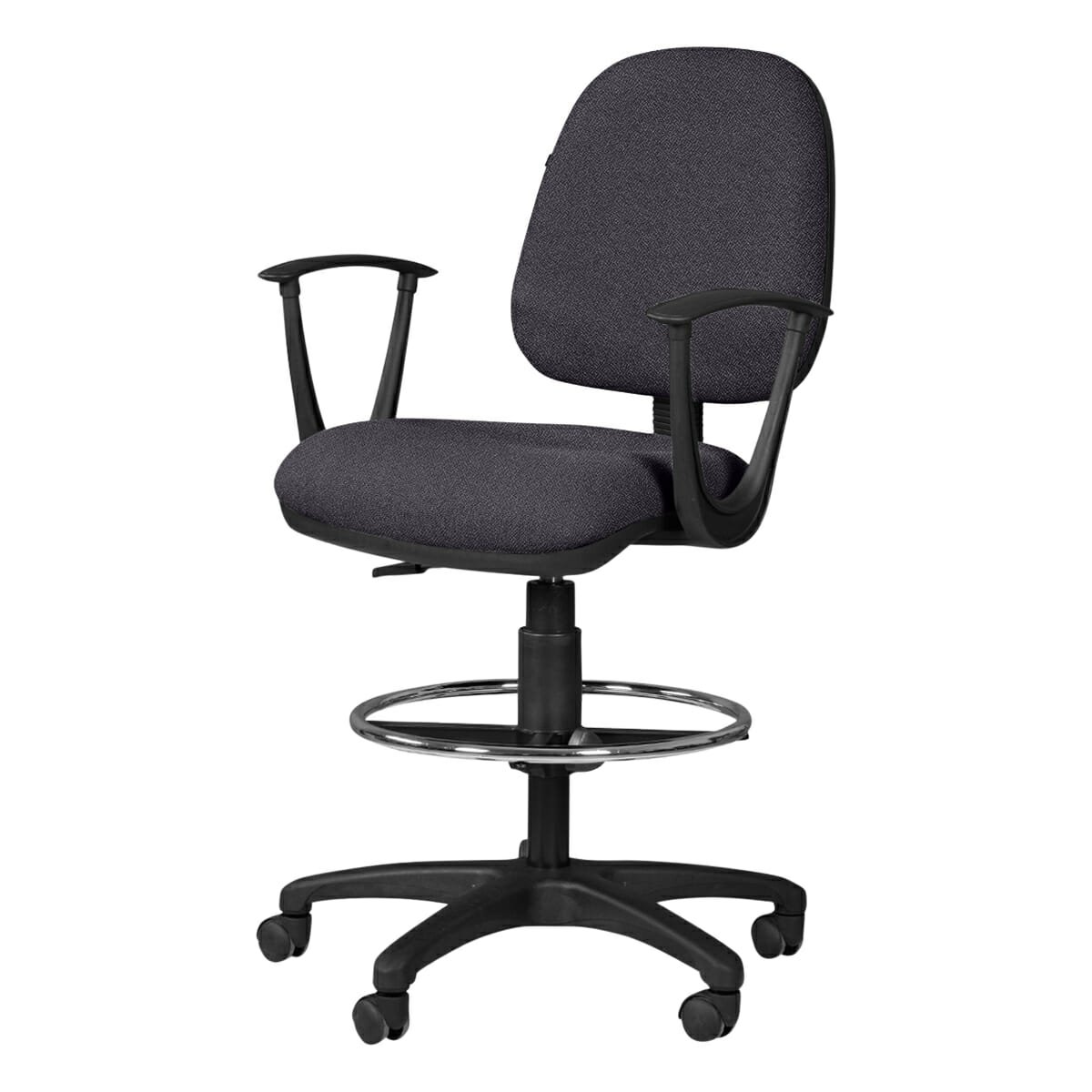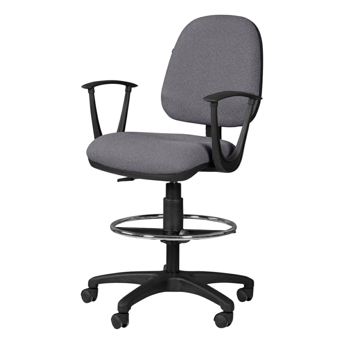Silla para tareas operativas con brazos fijos, asiento ergonómico y aro cromado