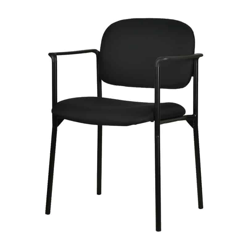 Silla apilable con brazos fijos, tapizada en tela negra resistente. Ideal para salas de espera, salones o lobbys. Modelo ergonómico, cómodo y fácil de almacenar.