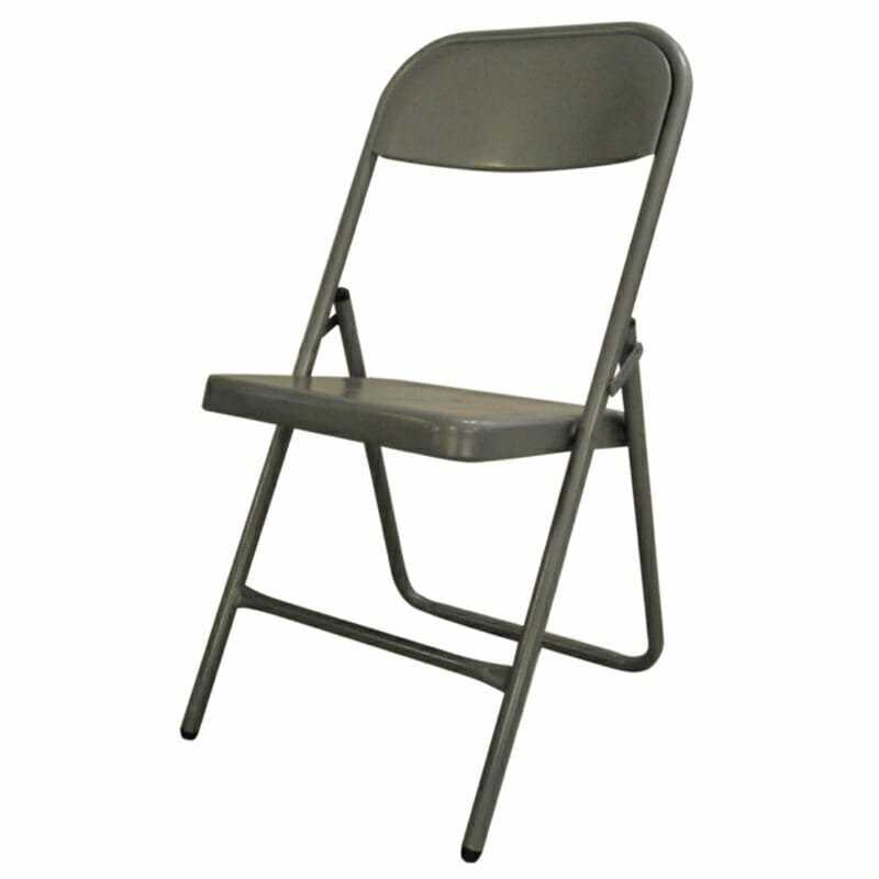 Silla plegable metálica color gris con estructura reforzada. Ideal para capacitaciones, banquetes o uso institucional. Soporta hasta 80 kg. Envío ensamblado.