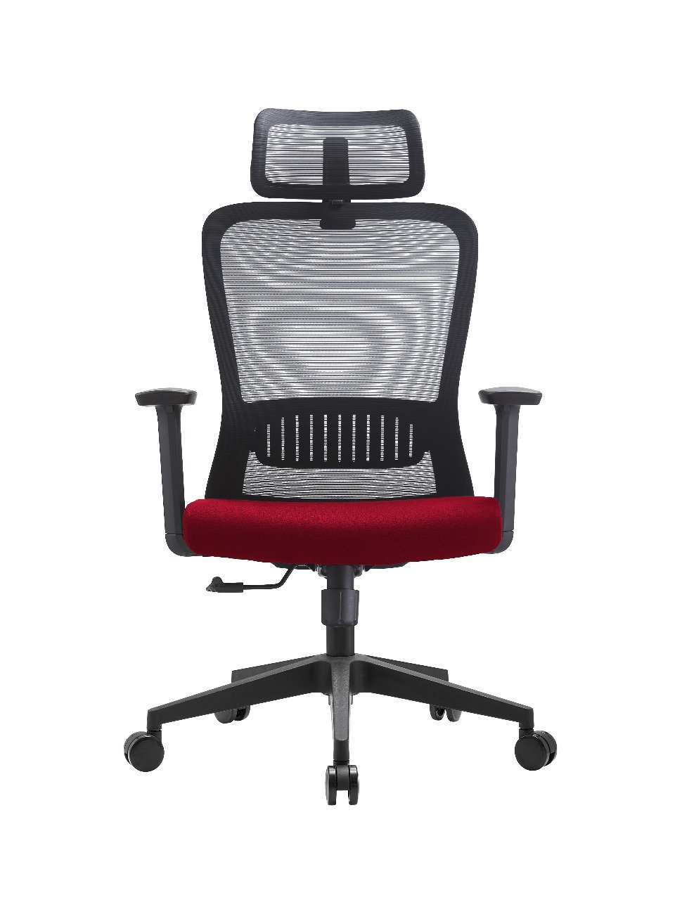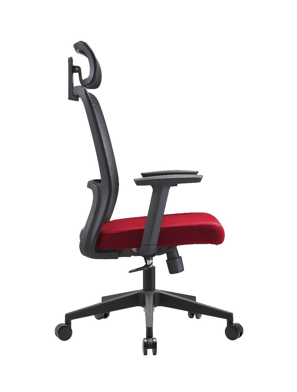 La ErgoLux Alta es una silla ergonómica de oficina con cabecera ajustable en altura y ángulo, respaldo de malla con soporte lumbar flexible, asiento de poliuretano inyectado de 6 cm, mecanismo synchro, brazos ajustables y base de nylon de 64 cm con ruedas silenciosas de 60 mm. Disponible en negro, gris oxford, azul marino y rojo intenso. Garantía de 5 años.