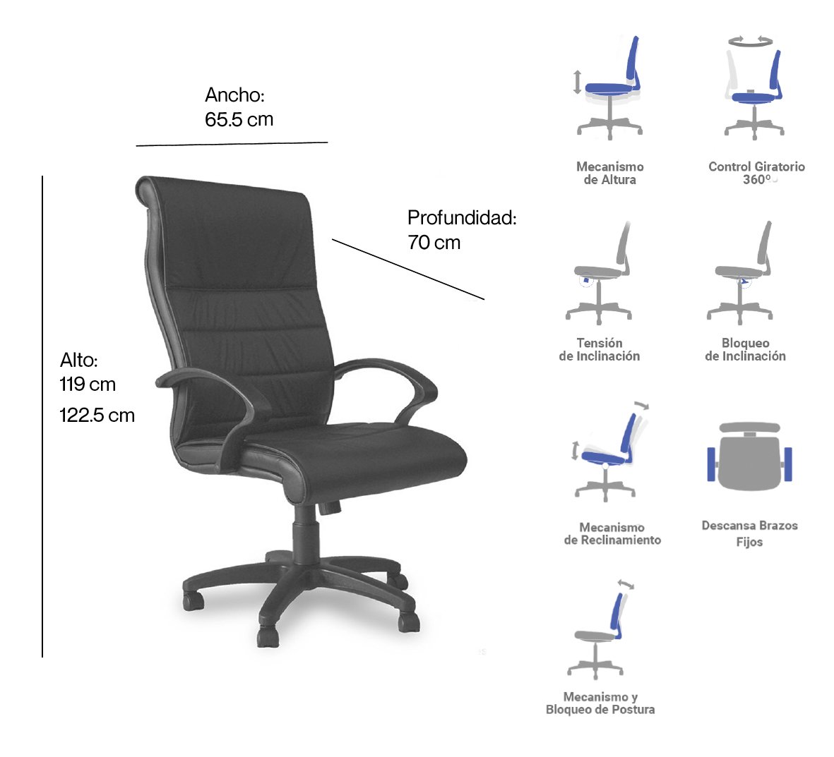 Las sillas Orozco, tapizadas en piel, conjuran calidad y diseño, ofreciendo un producto competitivo, elegante y moderno. Diseñadas para uso directivo o gerencial, estas sillas otorgan al usuario una experiencia superior de confort y estilo en su espacio de trabajo.