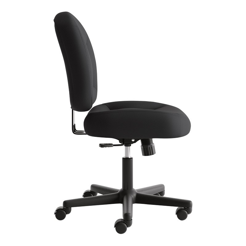Silla ejecutiva con respaldo alto y tapizado en tela negra, ideal para salas de juntas y oficinas. Diseño ergonómico con base giratoria y ajuste de altura para mayor comodidad.