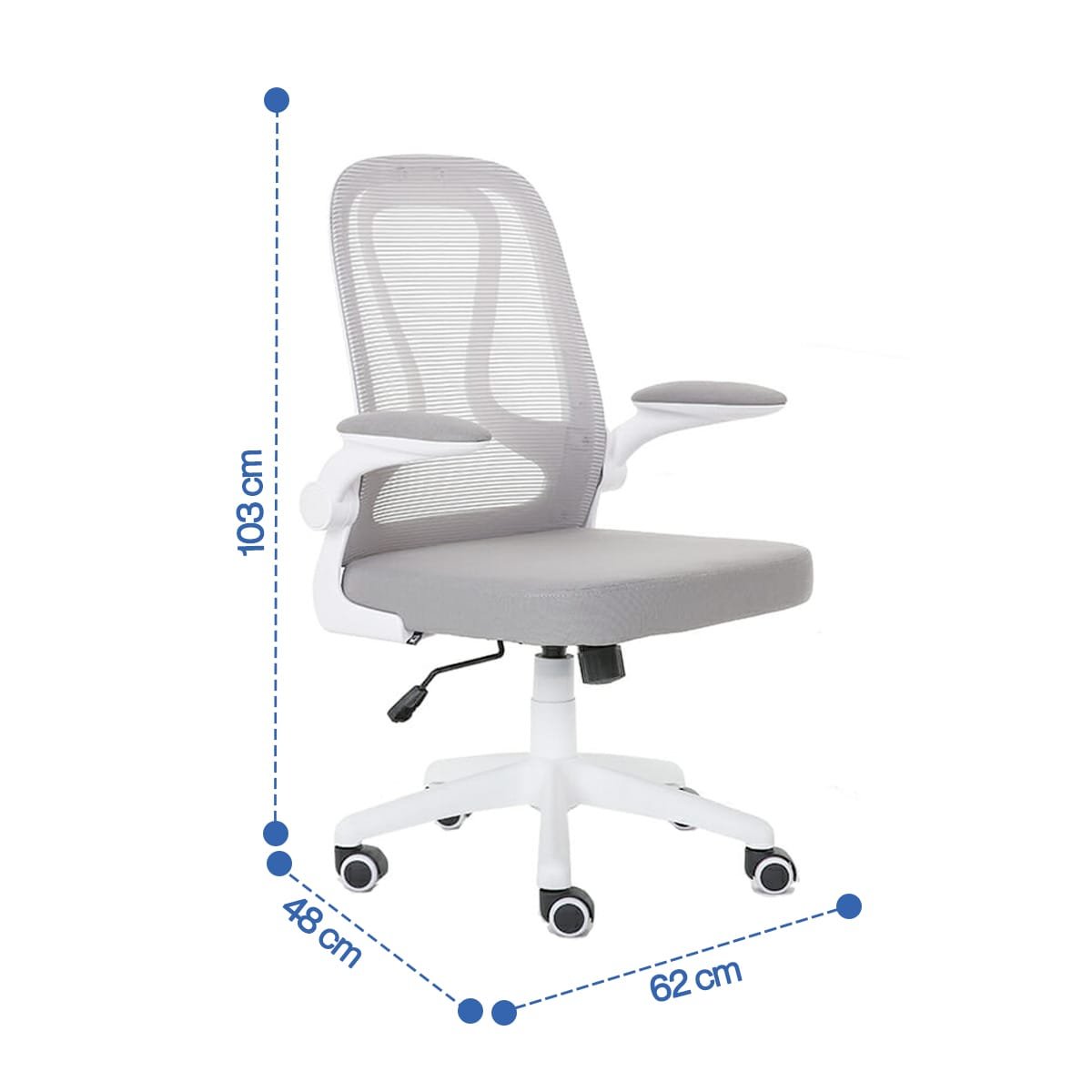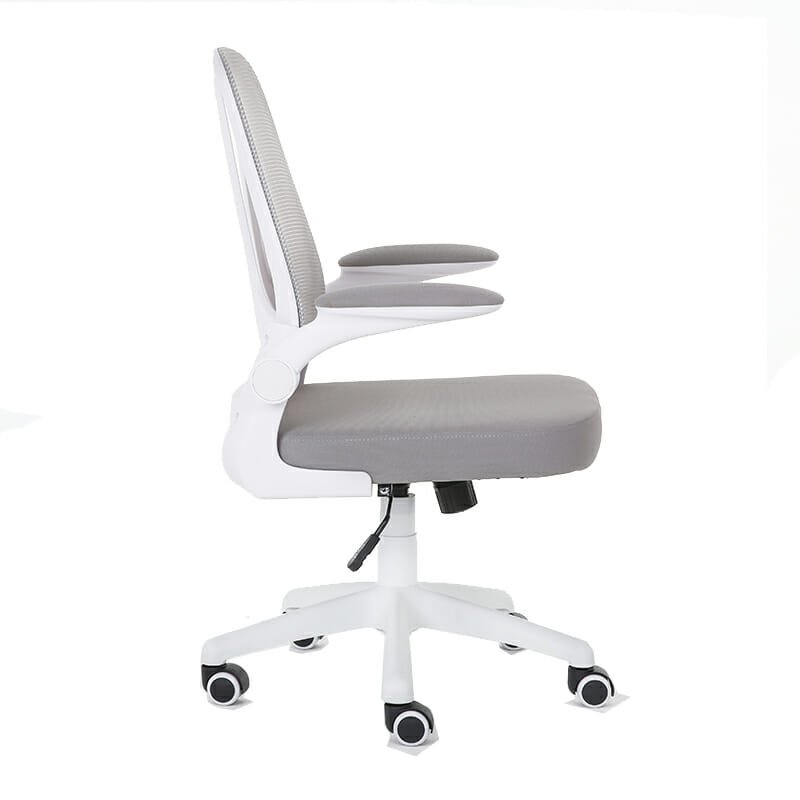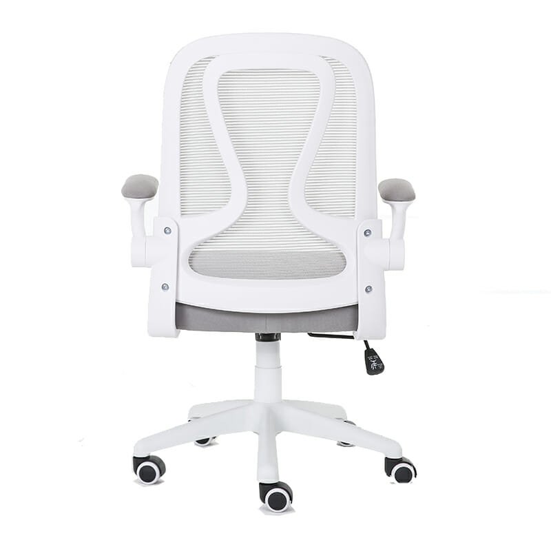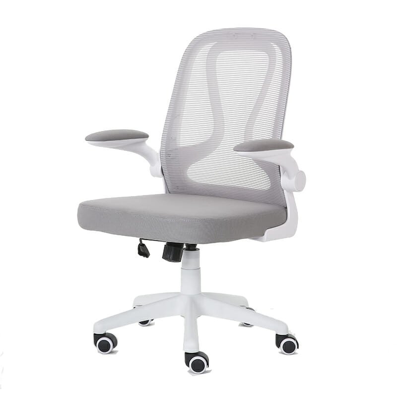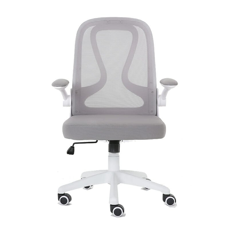 Silla Serie E: Moderna, funcional y cómoda, con respaldo en mesh gris y brazos abatibles. Ideal para oficinas operativas, auxiliares o home office.