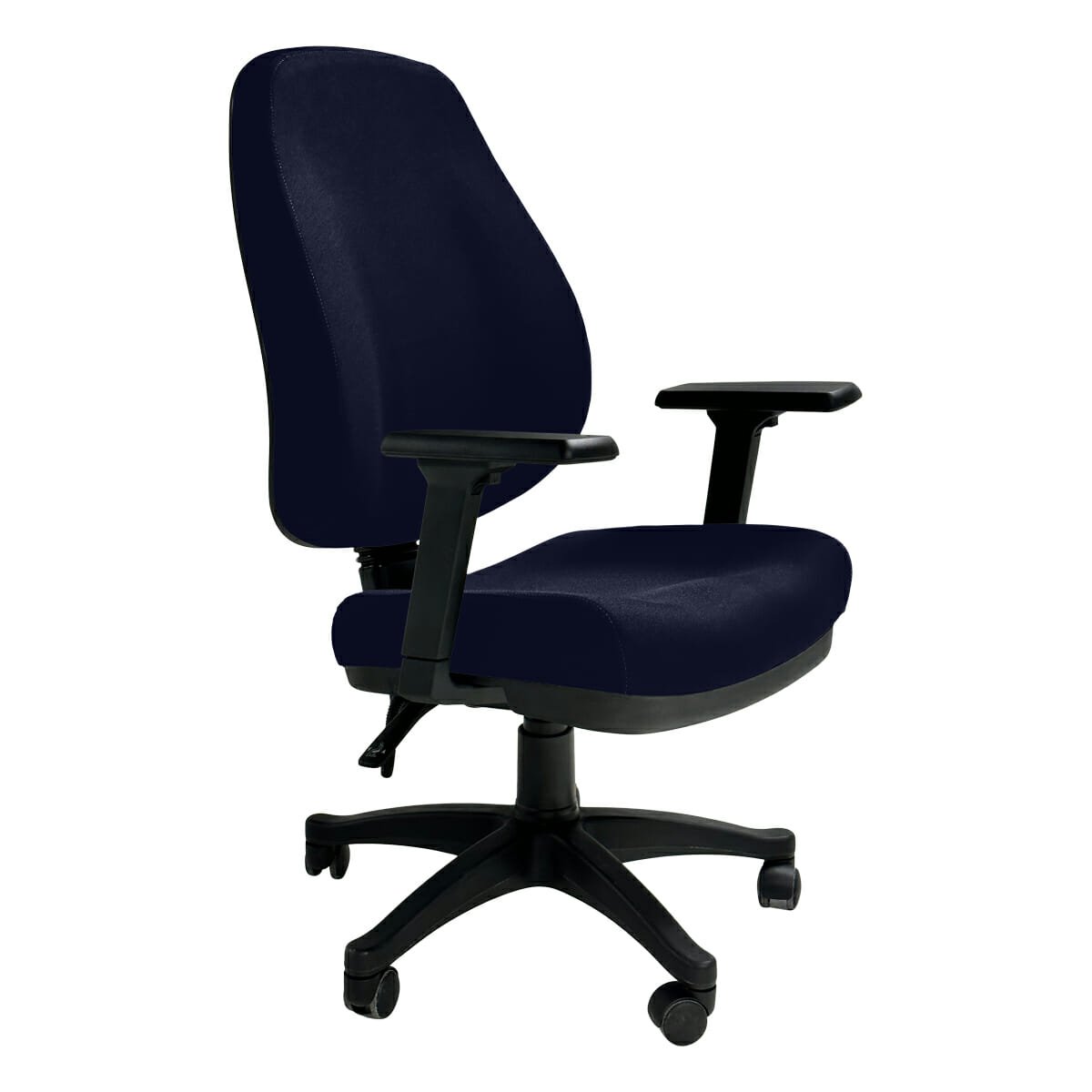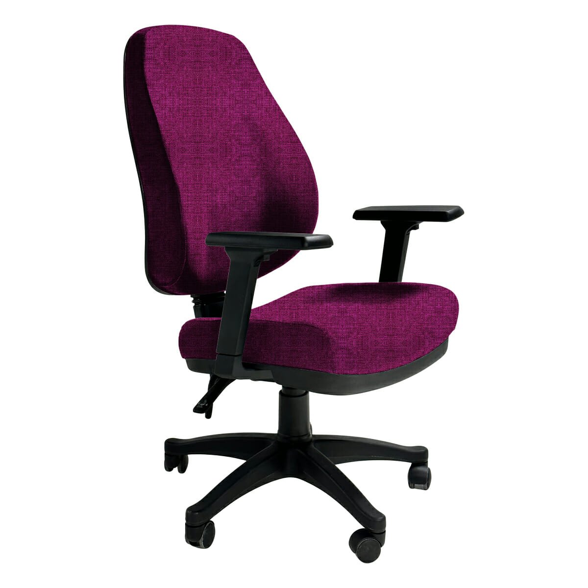 Silla ergonómica con brazos 3D, ajuste de respaldo y tapizado en tela. Ideal para oficinas secretariales y administrativas. Disponible en varios colores.