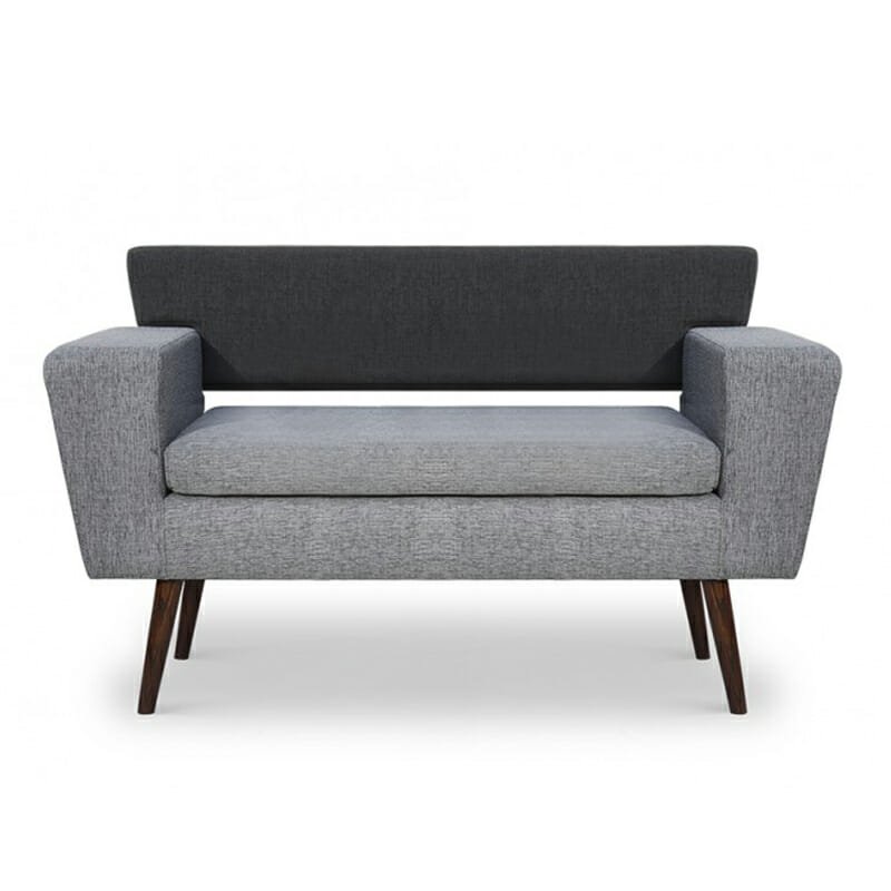 Sillón de 2 plazas con estructura de pino, tapizado en tela y respaldo medio acolchonado. Ideal para salas de espera y recepciones. Disponible en varias telas bajo pedido.